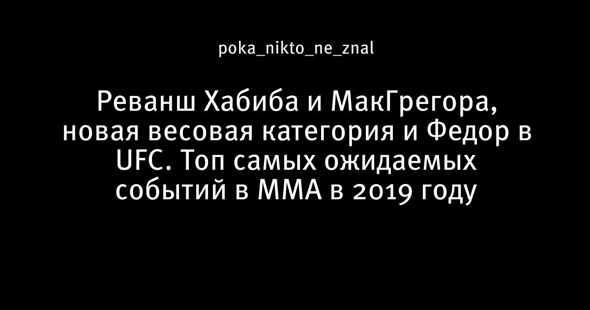 Реванш Хабиба и МакГрегора, новая весовая категория и Федор в UFC. Топ самых ожидаемых событий в ММА в 2019 году