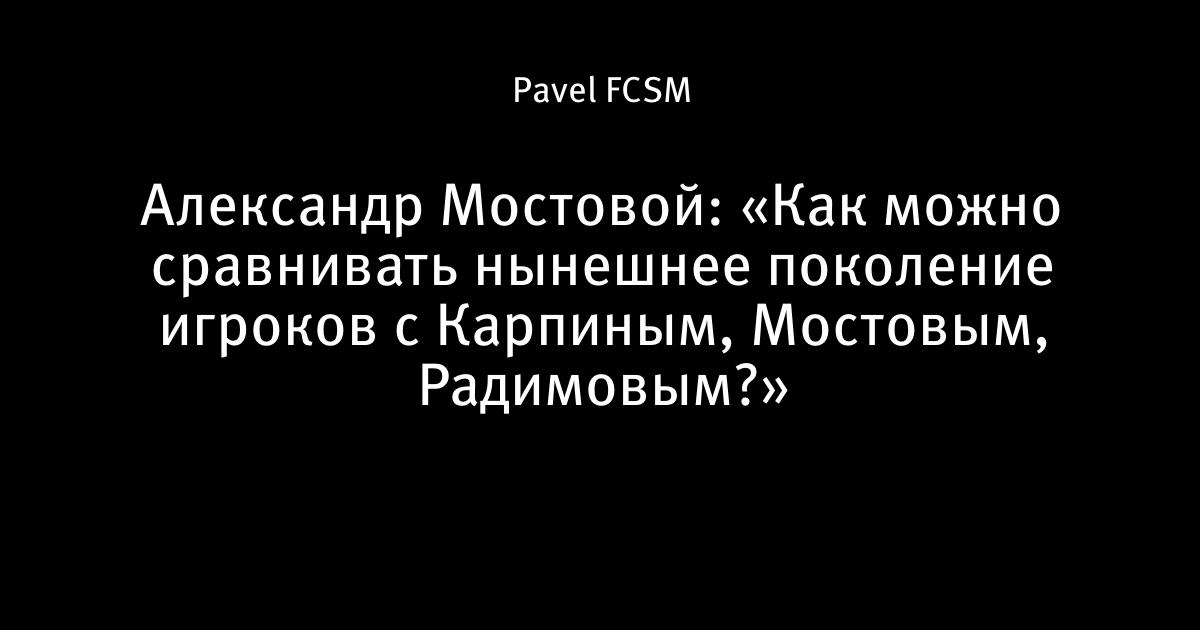 Александр Мостовой: «Как можно сравнивать нынешнее поколение игроков с Карпиным, Мостовым, Радимовым?»