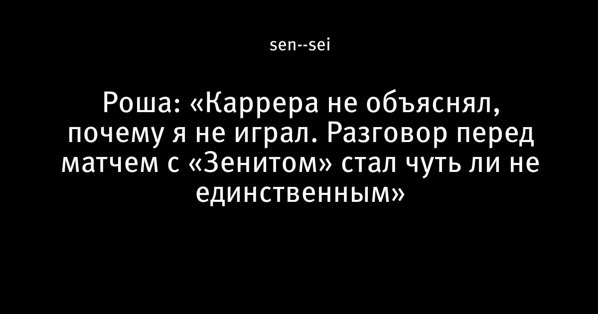 Роша: «Каррера не объяснял, почему я не играл. Разговор перед матчем с «Зенитом» стал чуть ли не единственным»