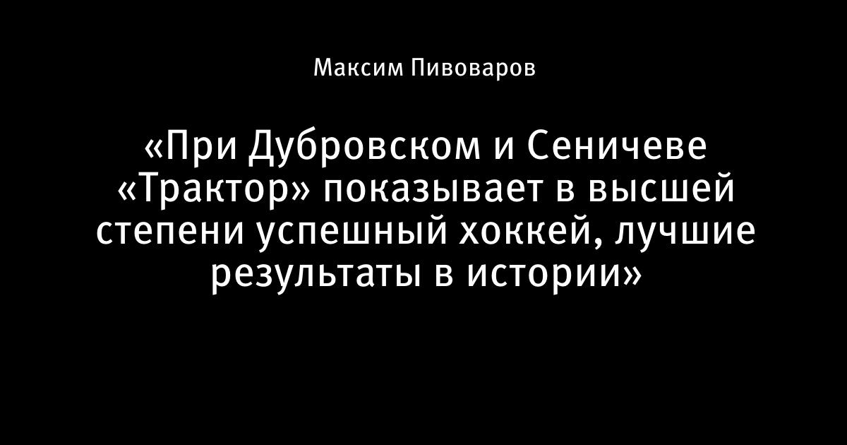 «При Дубровском и Сеничеве «Трактор» показывает в высшей степени успешный хоккей, лучшие результаты в истории»