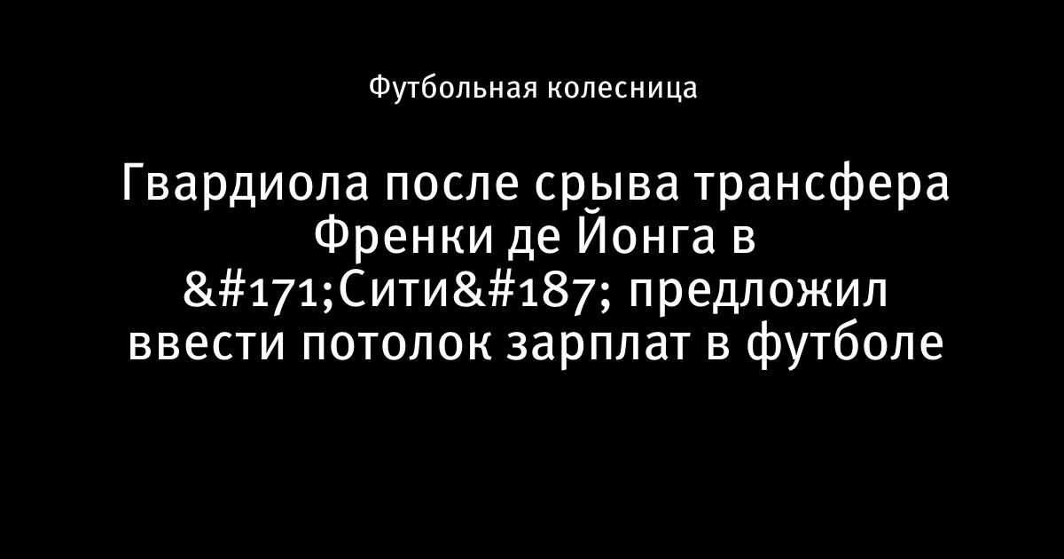 Гвардиола после срыва трансфера Френки де Йонга в «Сити» предложил ввести потолок зарплат в футболе