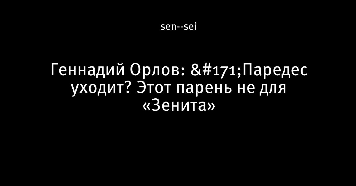 Геннадий Орлов: «Паредес уходит? Этот парень не для «Зенита»