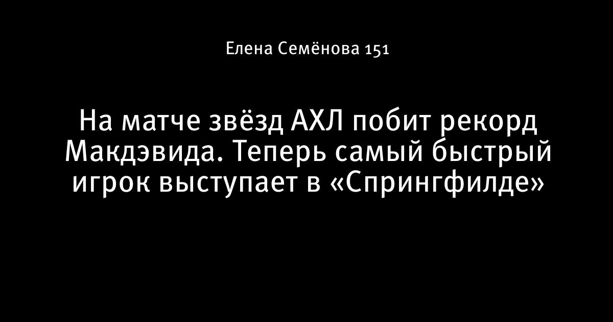 На матче звёзд АХЛ побит рекорд Макдэвида. Теперь самый быстрый игрок выступает в «Спрингфилде»