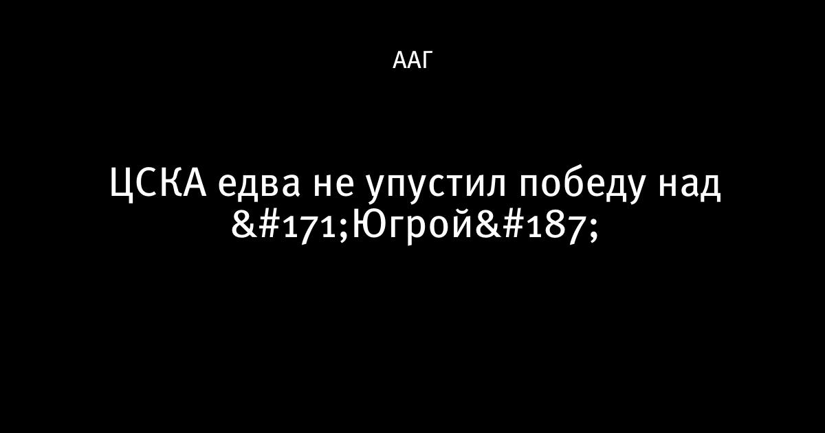 Московский ЦСКА одержал трудную победу над ханты-мансийской "Югрой" в чемпионате КХЛ со счётом 3:2. Начало матча сложилось для армейцев удачно: после первого периода они вели с преимуществом в две шайбы. А в начале второй 20-минутки Широков увеличил отрыв хозяев. Однако ещё до перерыва гостям удалось сократить разрыв до минимума. А в концовке третьего периода "Югра" могла и вовсе уйти от поражения, однако сделать этого северянам не удалось, даже несмотря на замену вратаря на шестого полевого игрока. ЦСКА (Москва) — "Югра" (Ханты-Мансийск) — 3:2 (2:0, 1:2, 0:0) 1:0 — Андронов (Сурови) — 1:49 2:0 — Зубов (Андронов) — 19:24 3:0 — Широков (Паршин, Рылов) — 24:12 3:1 — Пепеляев (Блохин, Хлынцев) — 26:39 ГБ 3:2 — Воробьёв (Староста) — 27:33 ГБ Вратари: Станя — Бирюков.