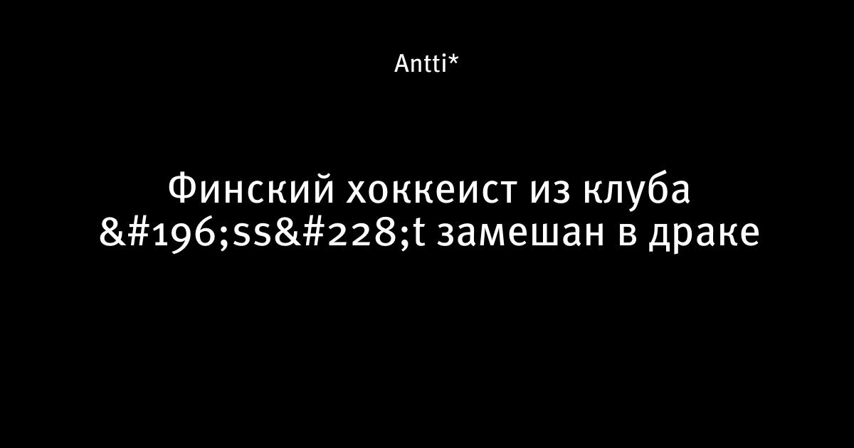 В минувшие выходные в центре Пори произошла драка с участием одного из игроков Тузов (Ässät ). По сведениям финской прессы, все началось со словесного "обмена любезностями" между сторонами в ночном клубе, а когда тот закрылся, на улице у входа противники перешли к рукопашному бою. По словам очевидцев, хоккеист, находившийся к тому моменту в изрядном подпитии, ударил своего оппонента в лицо. К месту стычки была вызвана полиция, однако, поскольку никто не пострадал, то протокол не составлялся, и оба драчуна самостоятельно добрались до дома. Как сообщил гендиректор клуба из Пори Юкка Хирсимяки, с замешанным в данной истории игроком уже проведена беседа и производится разбирательство по факту эпизода. Имя хоккеиста, принявшего участие в драке, не сообщается, однако с учетом того, что известно, что он имеет контракт с основной командой, но выступает за молодежку, речь может идти либо о вратаре Никласе Кекки, либо о недавно приобретенном Тузами нападающем Маркусе Койо.