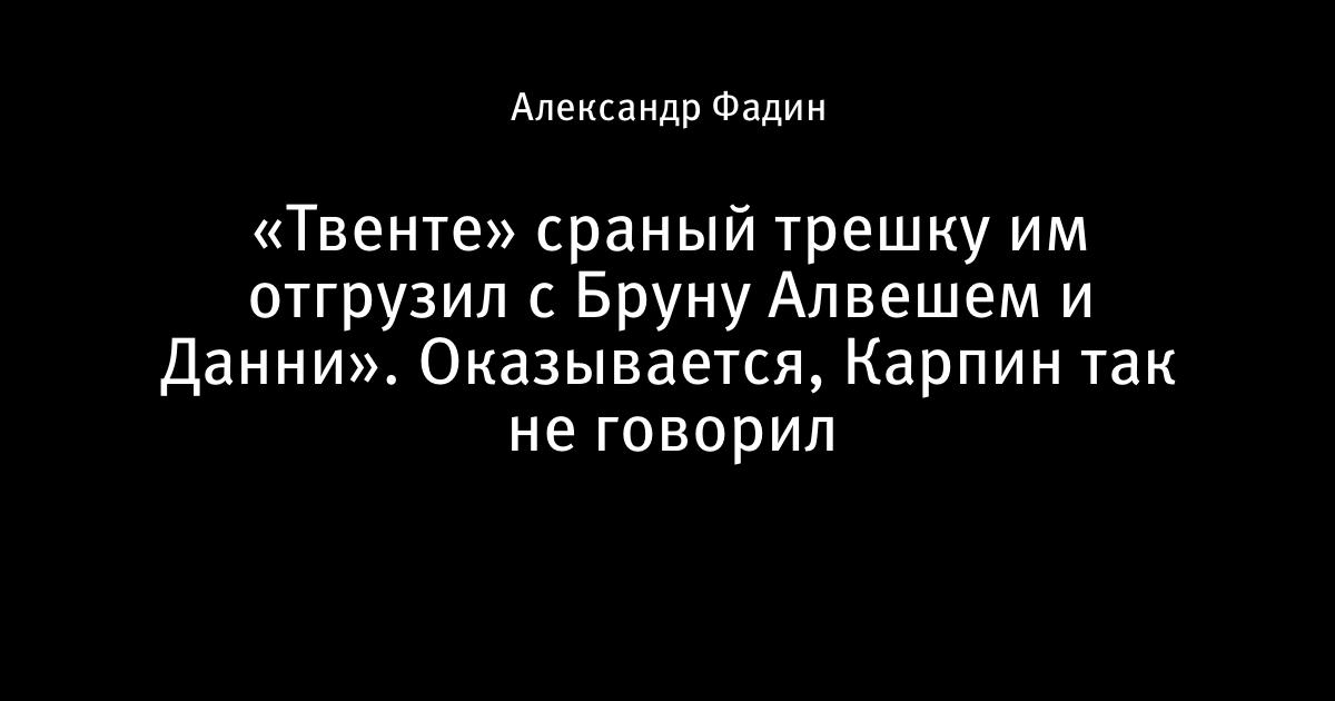 «Твенте» сраный трешку им отгрузил с Бруну Алвешем и Данни». Оказывается, Карпин так не говорил