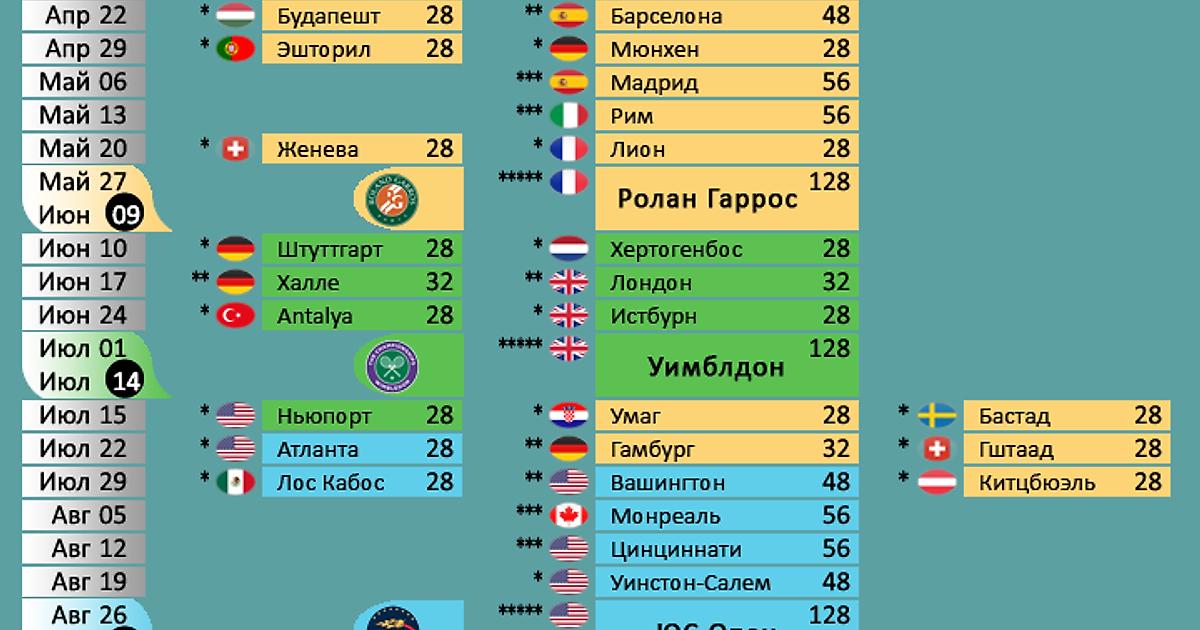 Расписание турниров АТР, Большого шлема и туров Кубка Дэвиса