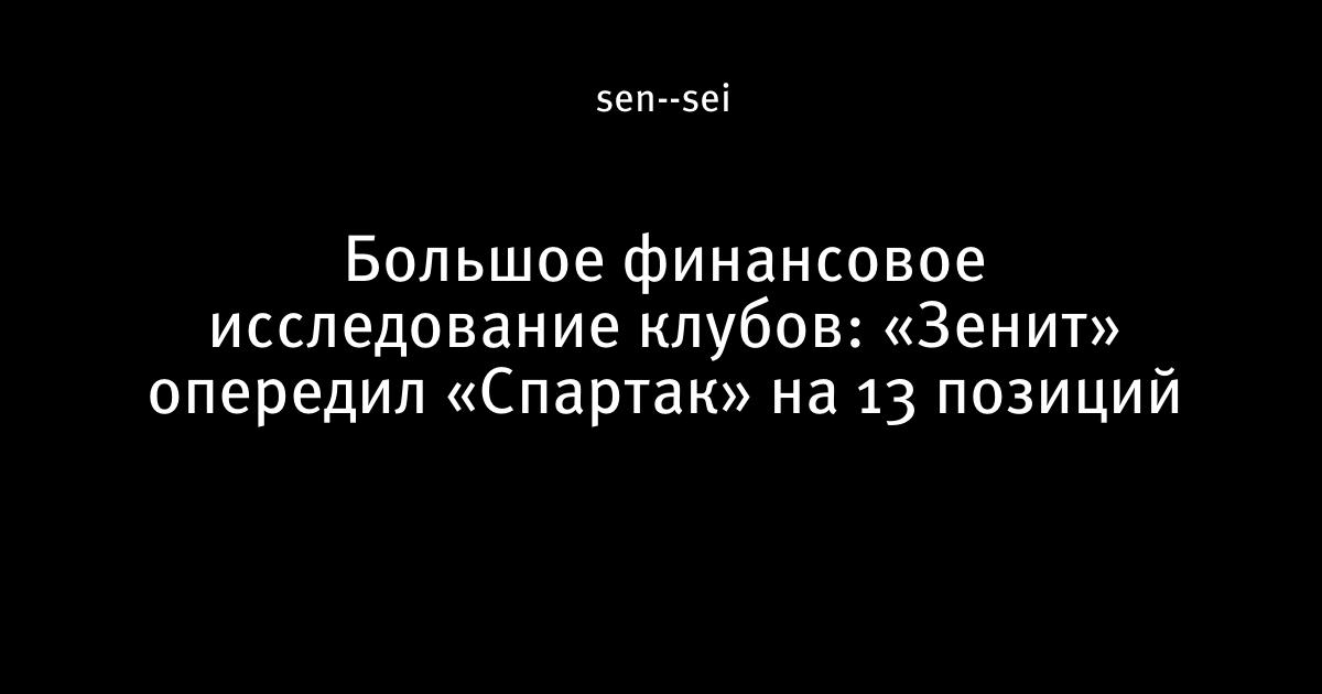 Большое финансовое исследование клубов: «Зенит» опередил «Спартак» на 13 позиций