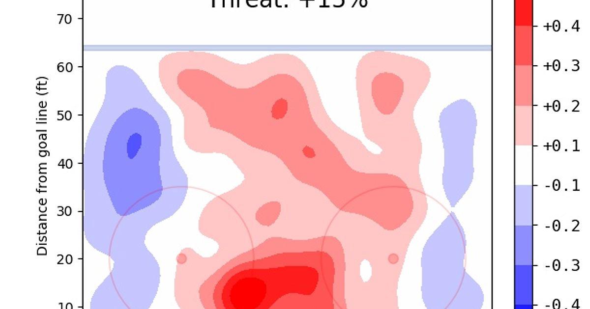А вот такая же тепловая карта бросков в равных составах этого сезона: