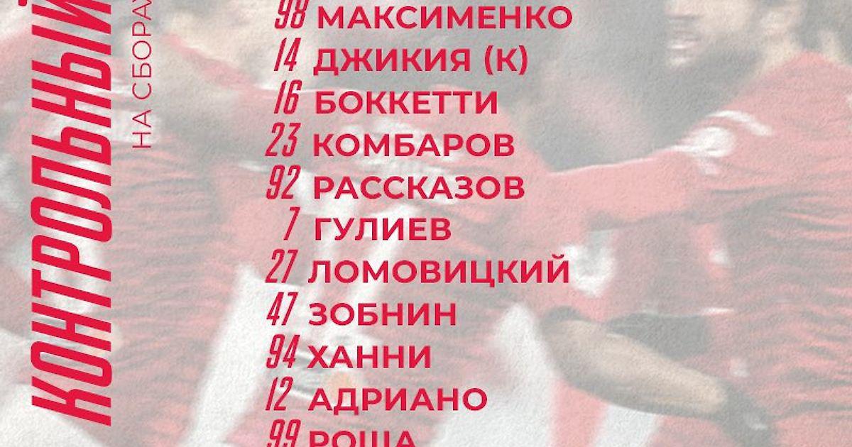 С первых минут на поле выйдут: Максименко, Рассказов, Джикия (к), Боккетти, Комбаров, Гулиев, Зобнин, Ломовицкий, Ханни, Педро Роша, Луис Адриано.
