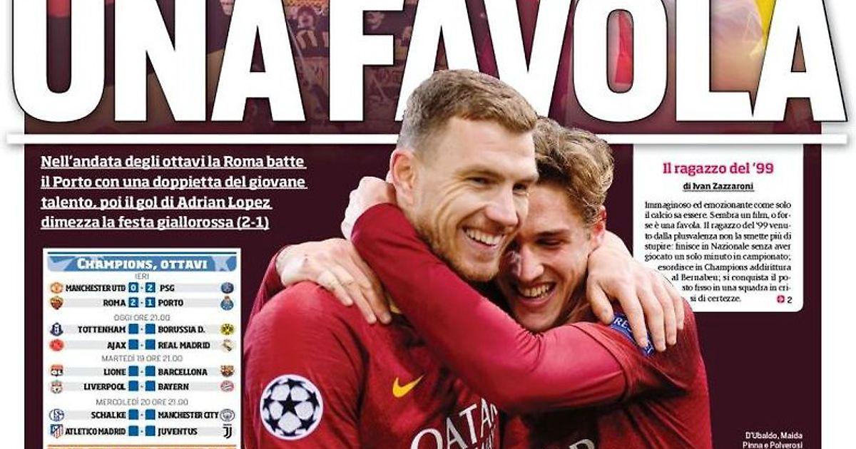 Юный Дзаньоло освещает Лигу Чемпионов. В первом матче 1/8-финала «Рома» победила «Порту» благодаря дублю юного таланта, затем гол Адриана Лопеса уменьшил праздник Джаллоросси (2:1).