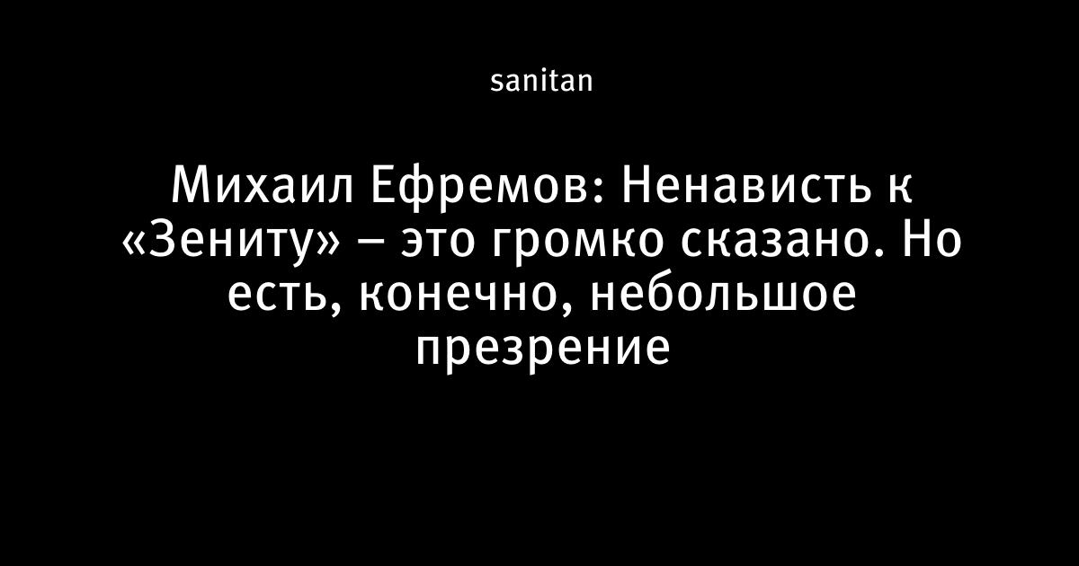 Михаил Ефремов: Ненависть к «Зениту» – это громко сказано. Но есть, конечно, небольшое презрение