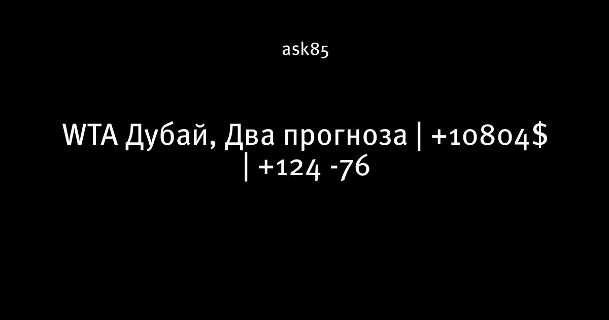 WTA Дубай, Два прогноза | +10804$ | +124 -76