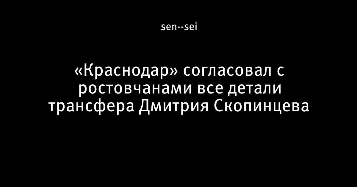 В настоящее время «Краснодар» согласовал с ростовчанами все детали трансфера Дмитрия Скопинцева. Сумма сделки составила 4,4 миллиона евро плюс бонусы. Футболисту в ближайшие дни предстоит пройти медицинское обследование, после чего с ним будет подписан долгосрочный личный контракт.
