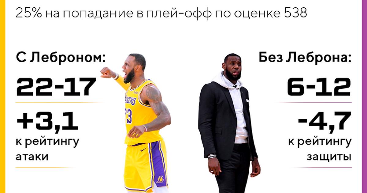 Леброн активировал турборежим, но хватит ли этого, чтобы вытянуть в плей-офф команду, которая без него играет на целых 7,4 очка на 100 владений хуже?