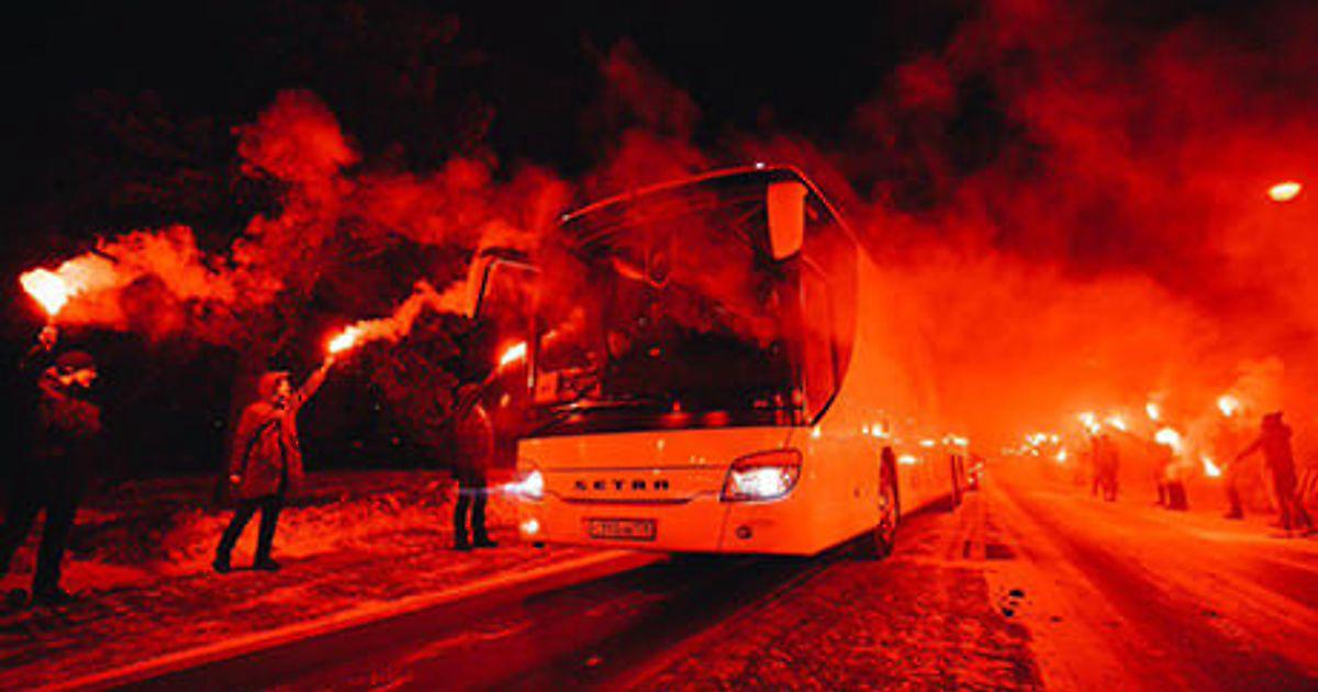 «Зенит» ехал на ответный матч против «Фенербахче» (в первом проиграли 0:1) сквозь коридор из факелов. Оказывается, такое бывает не только в Стамбуле, но и в февральском Петербурге. Вид сверху особенно впечатляет.