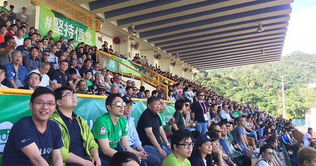 На трибунах атмосфера совершенно спокойная и большую часть зрителей составляют простые наблюдатели. Основная масса это мужчины в возрасте с газетами и программками в руках, но немало молодежи и женщин. Первое, что бросается в глаза - активных фанатов номинальных гостей сегодня значительно больше. Порядка 30-40 болельщиков «Kitchee» сегодня противостоят дюжине ребят в зеленой форме «Tai Po». Эта ситуация легко объясняется тем, что как ни крути, а чемпионат Гонконга это турнир в рамках одного города. Ради поддержки своего любимого клуба фанаты гостей преодолевают лишь 30-минутную поездку на метро. Диктор на стадионе объявляет, что на стадионе присутствует 1800 зрителей. Как оказалось позже, эта игра стала самой посещаемой в этом сезоне.