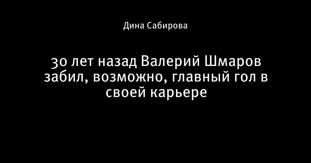 30 лет назад Валерий Шмаров забил, возможно, главный гол в своей карьере