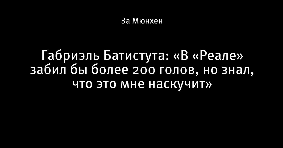 Габриэль Батистута: «В «Реале» забил бы более 200 голов, но знал, что это мне наскучит»