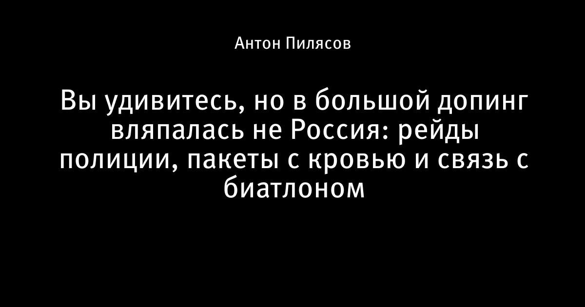 Вы удивитесь, но в большой допинг вляпалась не Россия: рейды полиции, пакеты с кровью и связь с биатлоном