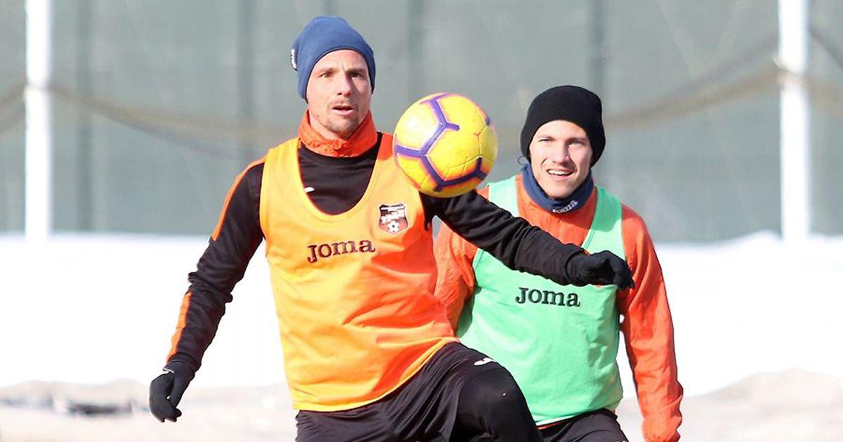 Футболисты «Урала» готовятся к ответному матчу 1/4 финала Кубка России со «Спартаком», тренировки проходят на запасном поле «СКБ-Банк Арены».