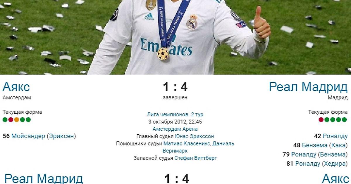 Эффект Роналду. «Реал» в матчах с «Аяксом» раньше и сейчас