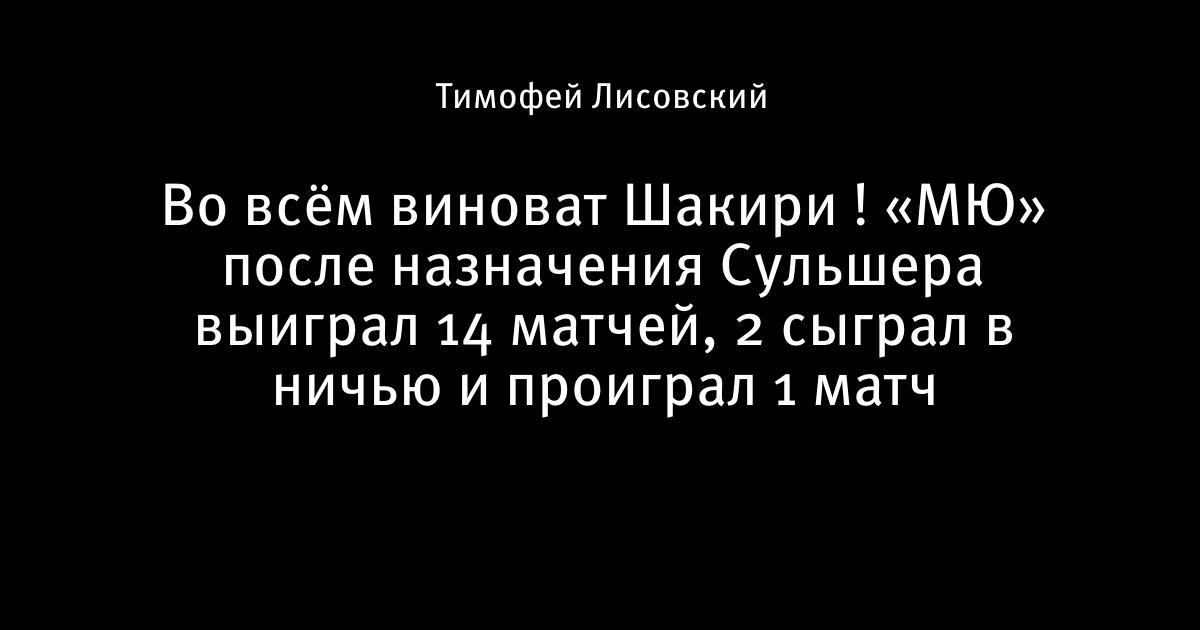 Во всём виноват Шакири ! «МЮ» после назначения Сульшера выиграл 14 матчей, 2 сыграл в ничью и проиграл 1 матч