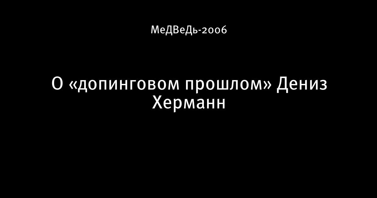 З.Ы. Я не исключаю, что на самом деле Херманн в 2006 году была злостной допингисткой и одурачила наивных взрослых, прикинувшись невинной овечкой. Или что завтра разразится скандал и в её пробе найдут что-то запрещённое.