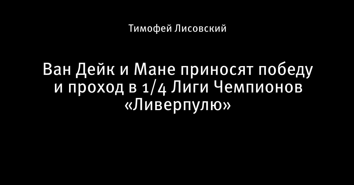 Ван Дейк и Мане приносят победу и проход в 1/4 Лиги Чемпионов «Ливерпулю»