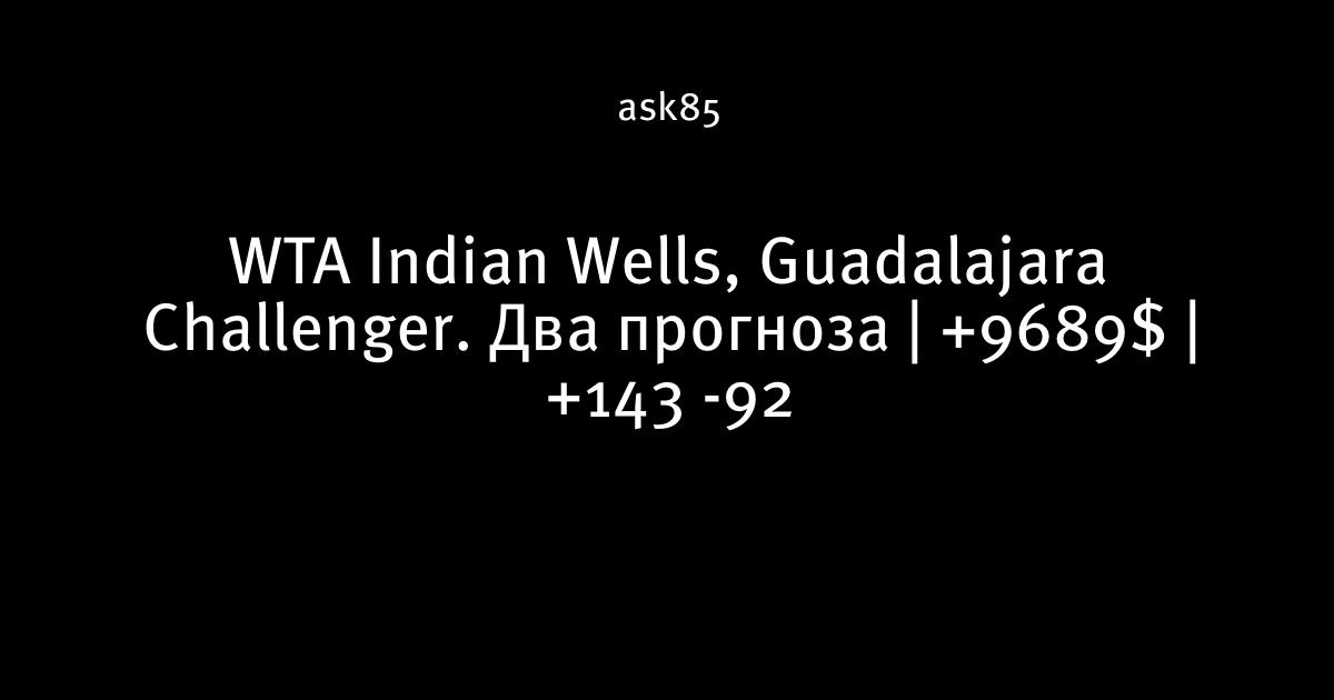 WTA Indian Wells, Guadalajara Challenger. Два прогноза | +9689$ | +143 -92