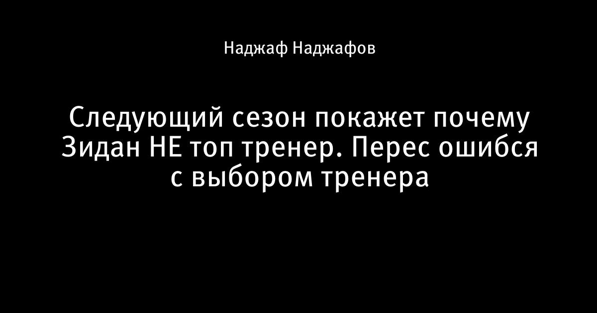 Следующий сезон покажет почему Зидан НЕ топ тренер. Перес ошибся с выбором тренера