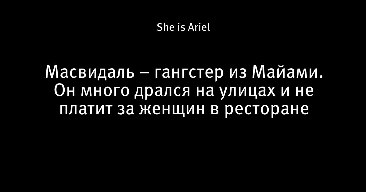 Масвидаль – гангстер из Майами. Он много дрался на улицах и не платит за женщин в ресторане