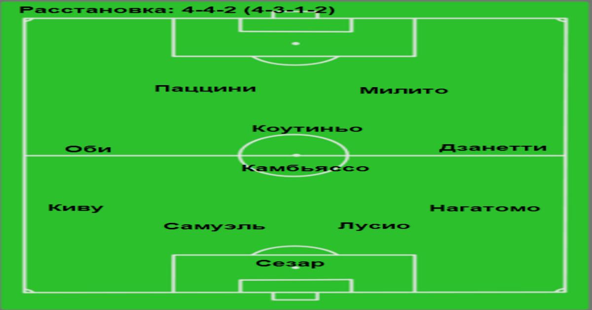 Играть под нападающими был отправлен молодой полузащитник Коутиньо, который, смещаясь на правый фланг, занимался не только атакой, но и отрабатывал в обороне. Впрочем, появление Коутиньо было вызвано травмой Снейдера – по заявлениям самого Раньери, он собирается использовать Уэсли как раз на этой позиции.