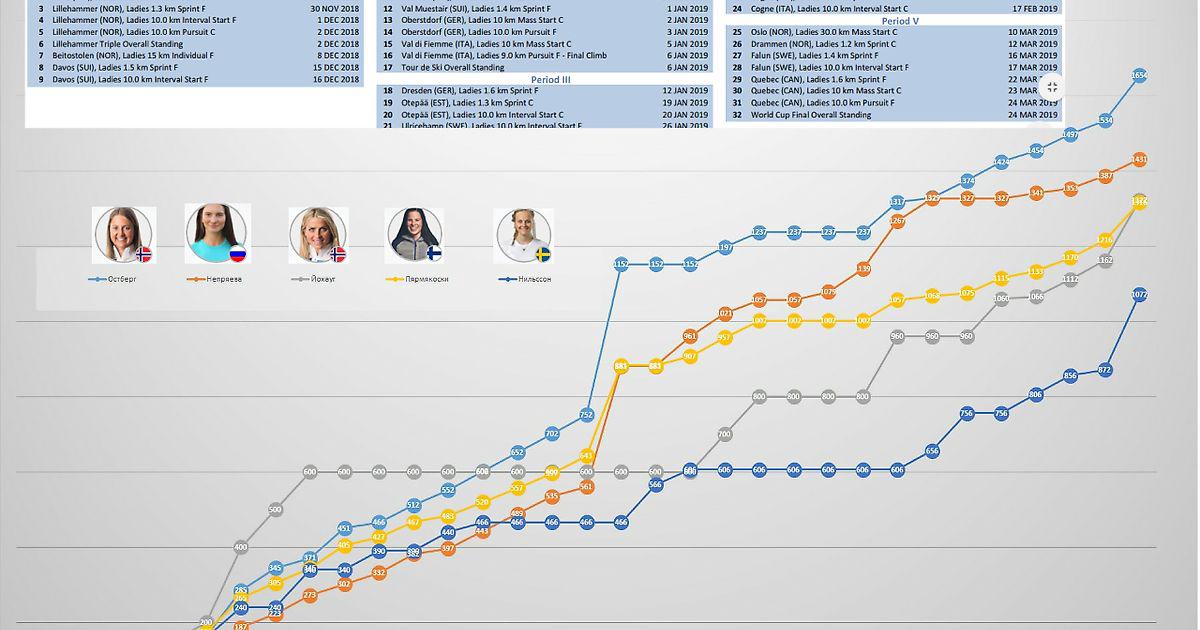 К тому же, безусловно, именно Йохауг сильнейшая на данный момент лыжница. Своё 3е место она заработала без участия в ТДС и спринтах, с 3мя победами в ЧМ- а Пармяковски бегала всё от начала до конца и всё равно не смогла обойти Терезу в общем зачёте Кубка.