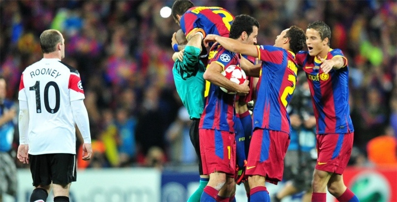 Англо-испанская евро-традиция «Барселоны»Через год повторился англо-испанский финал.Матч состоялся 27 мая 2009 года, на стадионе «Олимпийский» в Риме. «Барселона» на этот раз столкнулась с «Манчестер Юнайтед». Каталонцы быстро открыли счет на 10-й минуте, а вплоть до 70-й успешно держали мяч. Встреча завершился победой испанцев со счетом 2:0, а гол забили Самюэль Это'о и Лионель Месси.