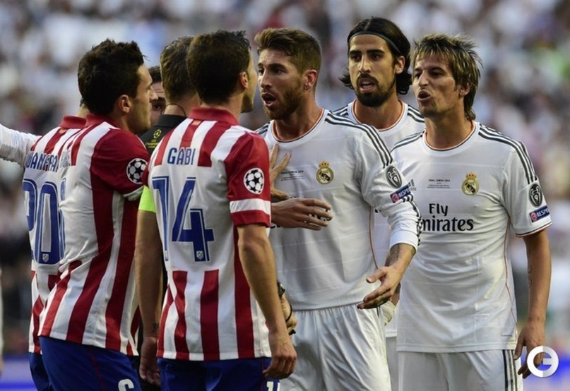 ФИНАЛ ДВУХ МАДРИДОВВ сезоне 2013/2014 мы вновь увидели испанский финал, в котором на стадионе Эштадиу да Луш в Лиссабоне сыграли две грозы из Мадрида. «Реал» и «Атлетико». «Сливочные» одержал победу в дополнительное время со счётом 4:1, завоевав свой десятый трофей. Это пятый финал Лиги чемпионов, где встречались две команды из одной страны, второй финал между двумя испанскими командами, и первый — между командами из одного города. Финальный матч пропустил Хаби Алонсо, получивший предупреждение в ответном матче полуфинала турнира с мюнхенской «Баварией». Эта жёлтая карточка стала третьей для испанского полузащитника, из-за чего он вынужден был пропустить финал, несмотря на апелляцию мадридской команды в УЕФА. «Мадридисты» показали «матрасникам», что в столице Испании есть всего одна команда. Гол за «Реал» забили Серхио Рамос, переведший игру в дополнительное время, а уже в доп.время отличились Гарет Бэйл, Марсело и Криштиану Роналду.