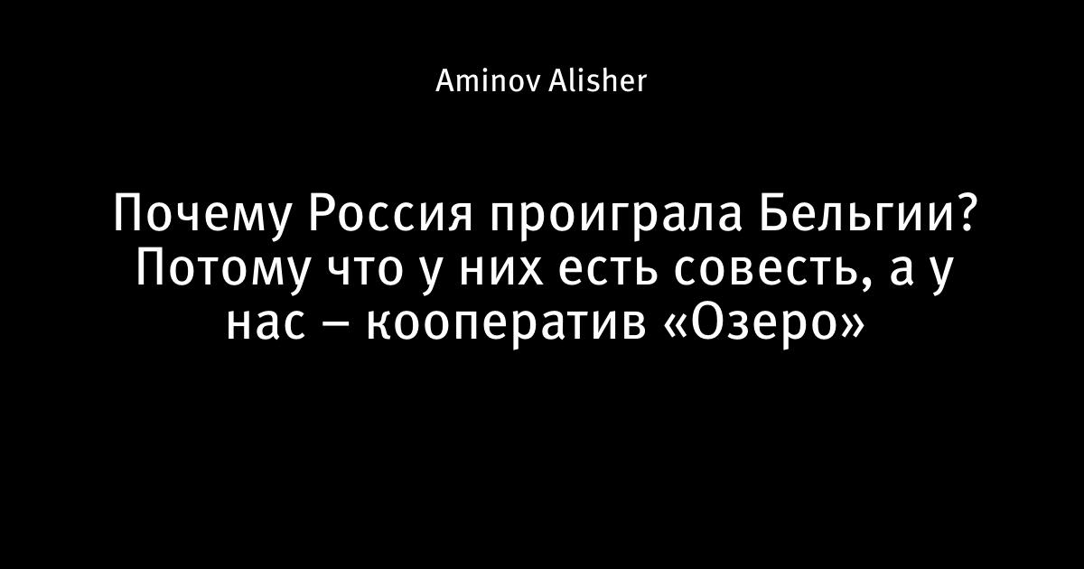 Почему Россия проиграла Бельгии? Потому что у них есть совесть, а у нас – кооператив «Озеро»