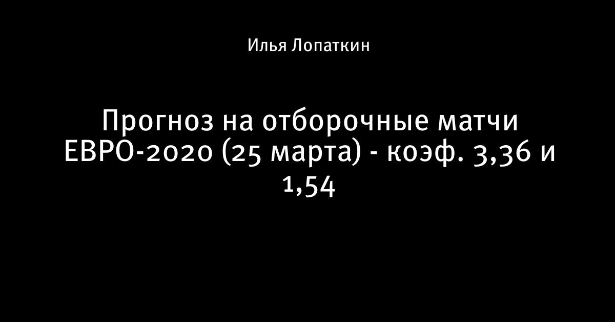 Прогноз на отборочные матчи ЕВРО-2020 (25 марта) - коэф. 3,36 и 1,54