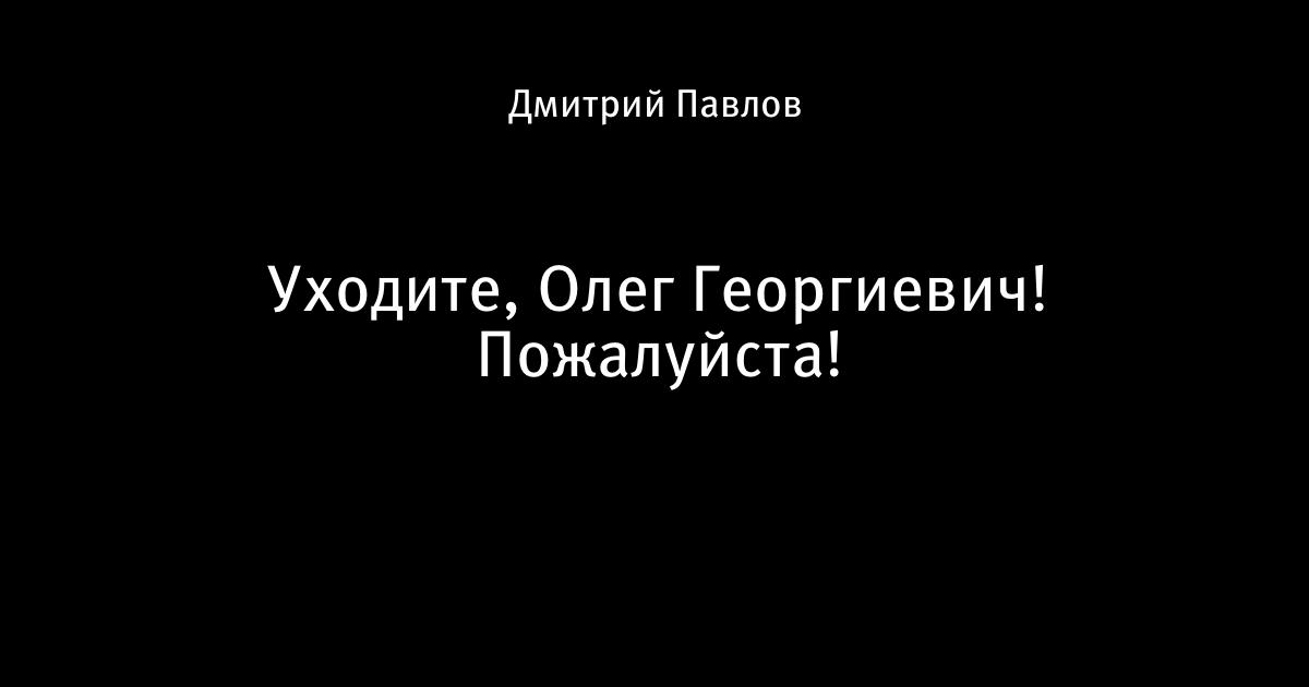 Уходите, Олег Георгиевич! Пожалуйста!