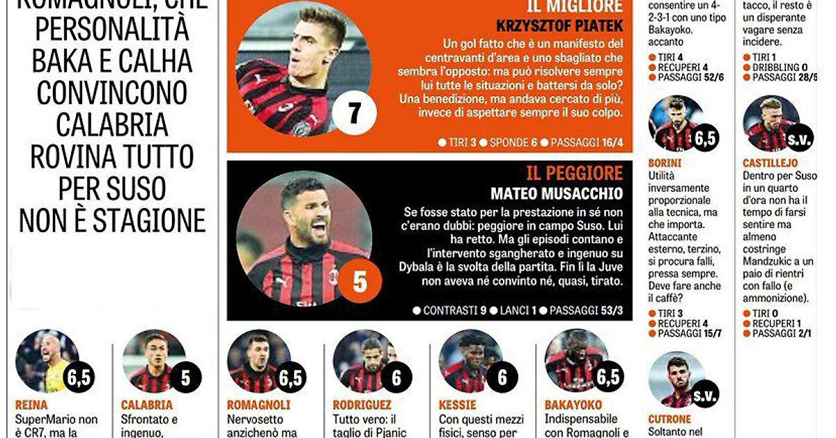 Оценки игрокам Милана за матч с Ювентусом от La Gazzetta dello Sport