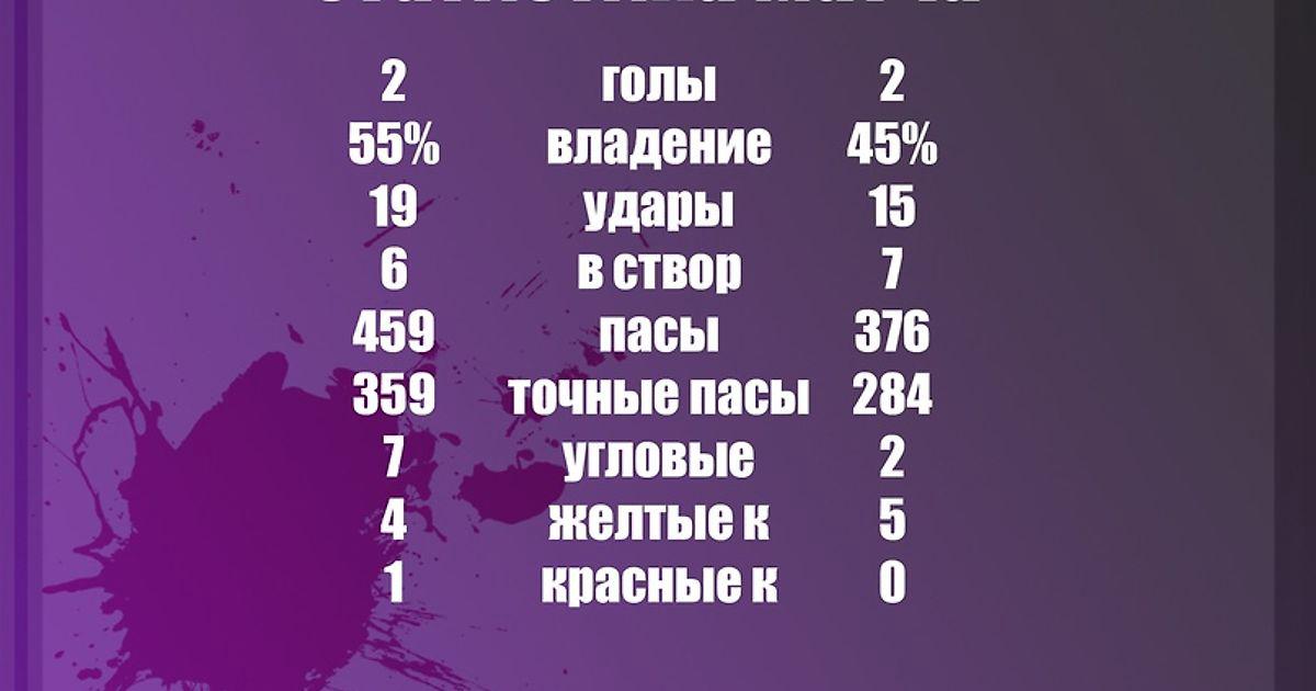 Первый тайм закончился со счетом 2:2. Благодаря удару со штрафного в исполнении Ивана Облякова, мяч сотрясает перекладину и отскакивает на голову Эрнандеса, а затем в ворота гостей.
