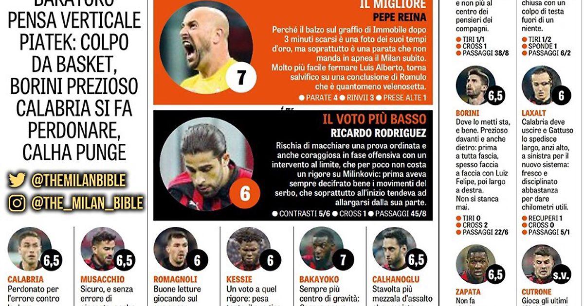 Оценки игрокам «Милана» за матч с «Лацио» от La Gazzetta dello Sport