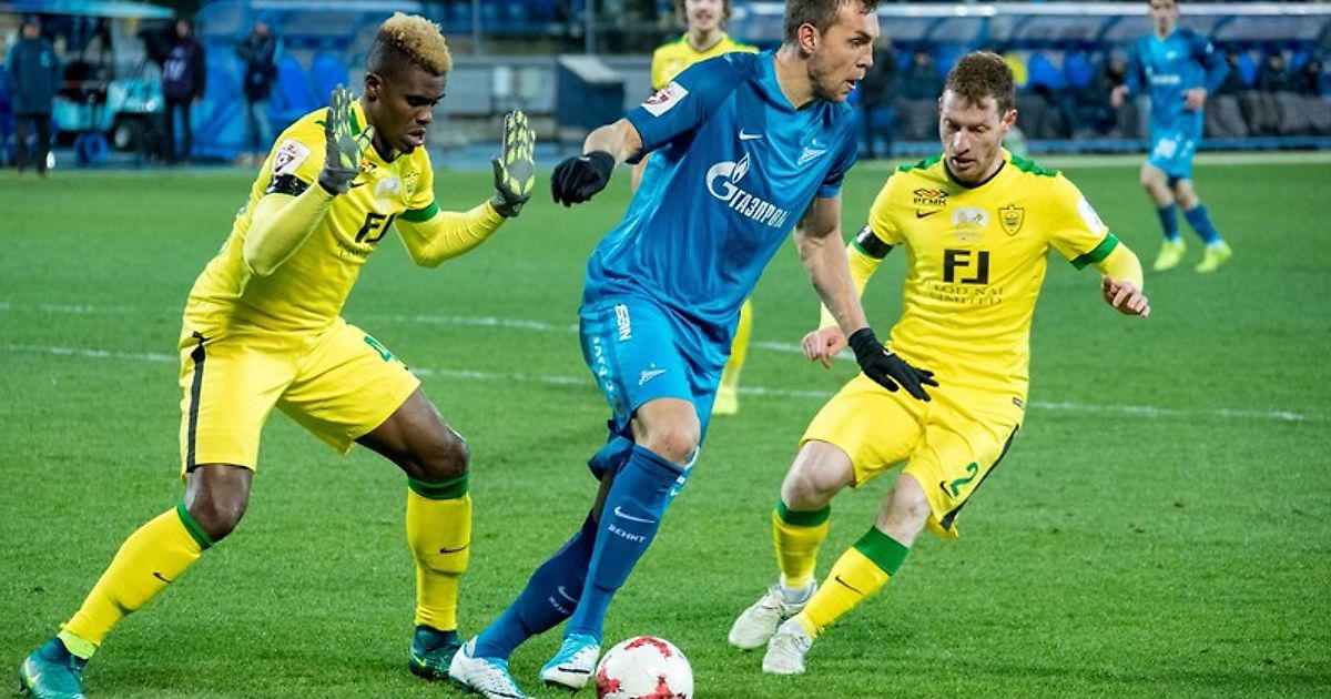 Зенитовцы сходу взвинтили темп, и за первые 10 минут спровоцировали две критические поломки махачкалинского «автобуса». Сначала Азмун, как заправский фехтовальщик, сделал идеальный выпад, сыграв на опережение после нацеленной подачи Мака, а затем он же скинул мяч под убойный удар Ивановичу после того, как Смольников и Ракицкий подсуетились на подборе после розыгрыша углового. В обоих случаях у кипера гостей Дюпина не было никаких шансов на спасение.