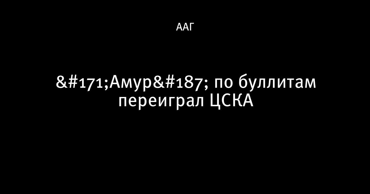 Лидер чемпионата КХЛ хабаровский "Амур" одержал победу над московским ЦСКА в серии буллитов — 3:2 ПБ. По ходу матча дальневосточники дважды вели в счёте, однако не удержали своё преимущество до сирены, пропустив вторую шайбу за две с небольшим минуты до конца основного времени. Овертайм победителя не выявил, а победу хабаровчанам принёс точный послематчевый буллит Петружалека. ЦСКА (Москва) — "Амур" (Хабаровск) — 2:3 ПБ (0:0, 1:2, 1:0, 0:0, 0:1) 0:1 — Петружалек (Шулаков, Врана) — 20:33. 1:1 — Рылов (Зубов) — 26:32 ГБ. 1:2 — Тарасов (Шулаков) — 30:12 ГБ. 2:2 — Барбашев (Сергеев) — 57:48. 2:3 — Петружалек — 65:00 ПБ. Броски: 36 (12-12-12-0) — 29 (8-13-7-1). Вбрасывания: 38 (12-15-9-2) — 39 (15-13-9-2). Штраф: 10 (6-4-0-0) — 14 (6-6-2-0). Вратари: Станя — Лашак.