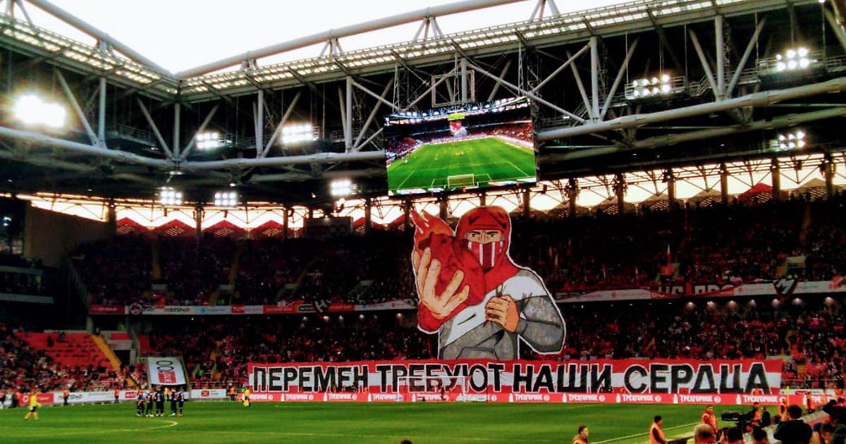 Спартаковский движ начал матч с шикарного перфоманса, требуя перемен. И перемены были, пусть пока только в составе, а не в игре. С первых минут на поле не было №8, а значит Спартак начал игру в кой-то веке полным составом. Тренерским "ноу-хау" стало присутствие сразу трёх опорников на поле. Может кто-то из них будет играть плеймейкера?