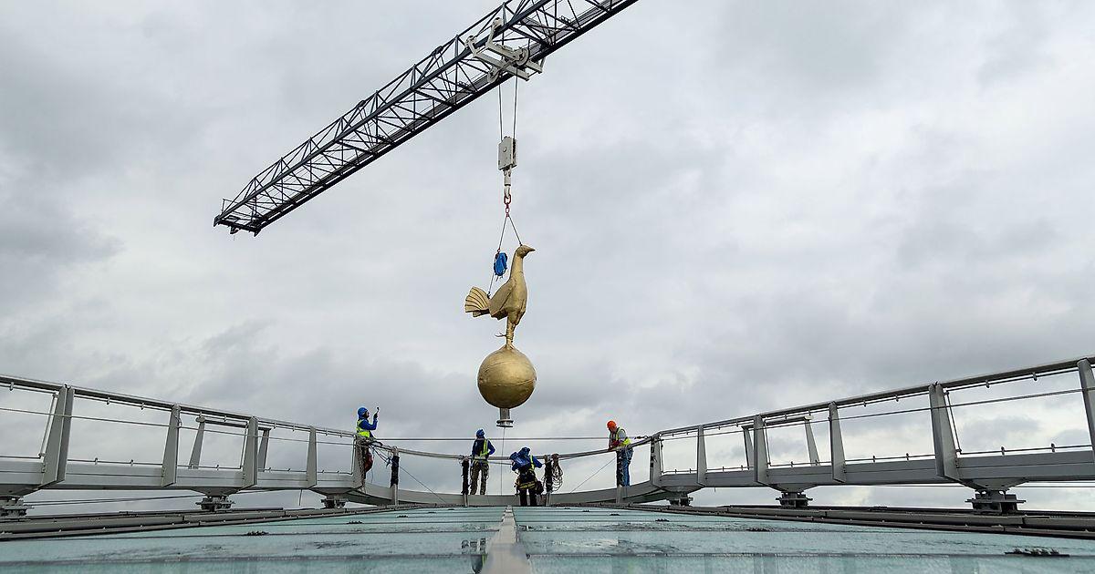 Высота новой версии золотого петушка – 4,5 метра, это почти вдвое больше оригинала.