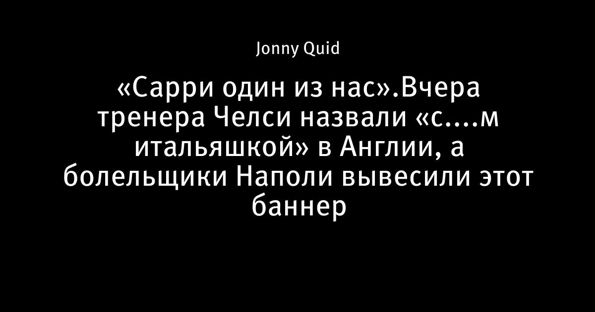«Сарри один из нас».Вчера тренера Челси назвали «с....м итальяшкой» в Англии, а болельщики Наполи вывесили этот баннер