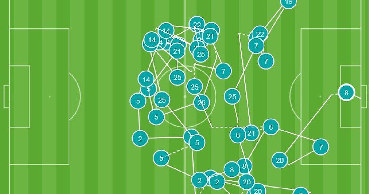 Конечно же, это самая продолжительная голевая комбинация сезона. Последний раз подобное случалось в АПЛ в 2015-м – гол Хуана Маты «Саутгемптону». И, конечно же, ничего подобного никогда не было в матче двух топ-клубов.