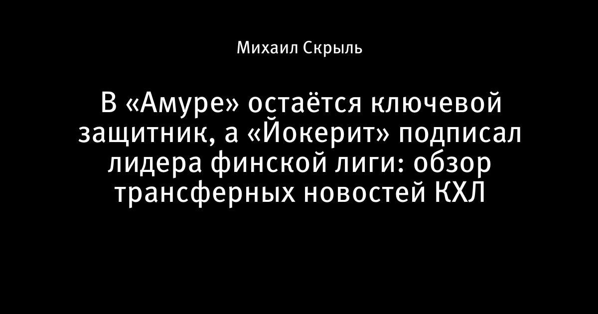 В «Амуре» остаётся ключевой защитник, а «Йокерит» подписал лидера финской лиги: обзор трансферных новостей КХЛ