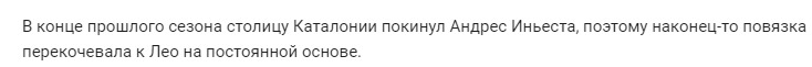 Довольно буднично утверждается, что «наконец-то получил повязку» их единственный самый любимый игрок «Барселоны», для чего только и понадобилось, чтобы из клуба ушел предыдущий капитан.